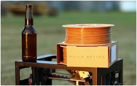 從食物到飲品,啤酒可謂功能多樣。美國纖維生產商3Dom,因其基于咖啡和麻的生物材料而著稱。最近他們研發了一種用啤酒制成的長纖維。急速運行的長纖維有啤酒的天然色彩,主要原料是PLA和啤酒釀造過程中產生的廢渣。3D-Fuel上售賣的500g/卷長纖維價格為39.99美元(約32英鎊)。現在你能用啤酒來制作啤酒杯,這多么不可思議!