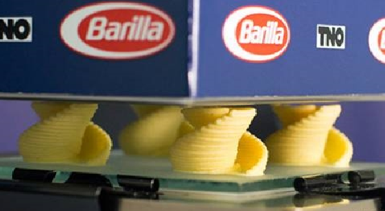 意大利生廠商Barilla展示了他們的第一臺3D意大利面打印機。這臺打印機可以在2分鐘內,打印成型意大利面。這種設備主要面向餐飲業,生廠商稱這臺設備對于餐廳和意大利面愛好者而言堪稱完美。打印所需的原料是水和面粉,利用FDM技術,使面漿層層堆疊成所需的形狀。目前,設備還處于原型機階段,生廠商稱有望今年晚些時候推出成型設備。