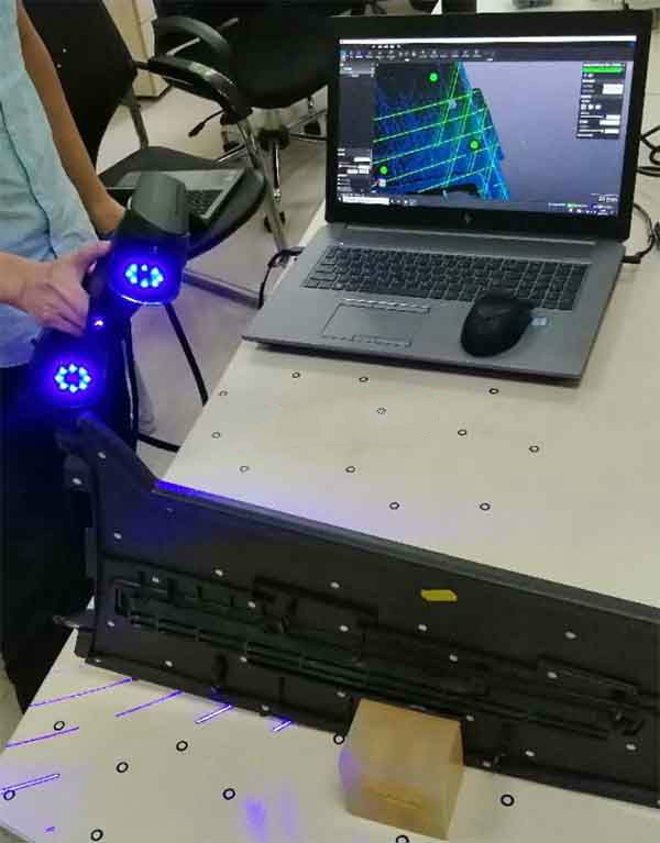 現在客戶想要提高測量效率,盡快出圖,且降低原有人工測量產生的誤差。手持式三維掃描系統能夠非常快速的中控面板進行全面掃描,有效避免人為測量誤差。所以我司采用三維掃描儀對汽車中控面板,具體步驟如下: